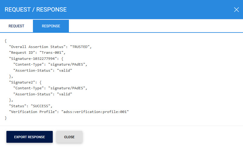 Clicking on the Request/Response link will display the details of request and response against selected report.