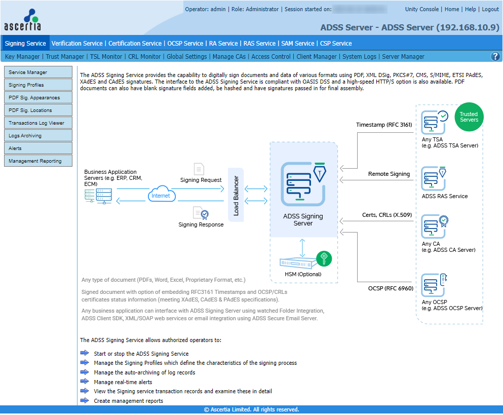 The following sections describe how to configure the ADSS Signing Service.
