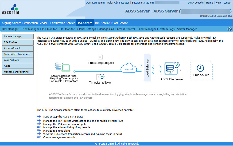 ADSS TSA Server excels because of its scalability, resilience and support for multiple pre-defined time stamp policies (multiple virtual TSAs). Its support for external trusted time monitoring and ability to alert staff to time synchronisation issues and the attention to detail in security management, including optional dual control of specific features, management reporting and transaction log views of time stamp information, are in advance of anything seen elsewhere, and these aspects are key to minimising operational time and costs.