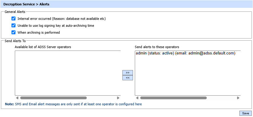 System operators who will receive these alerts can be configured here as well.