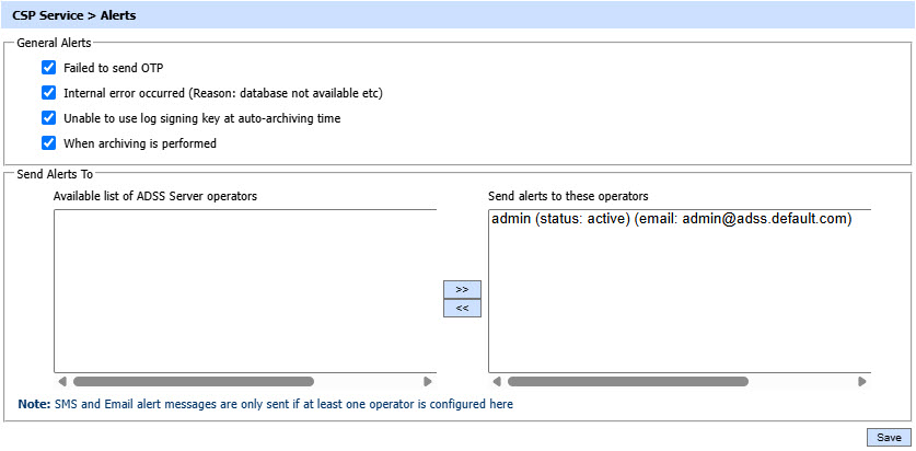 For more details on configuring Email/SMS/SNMP gateways navigate to Global Settings. System operators who will receive these alerts can be configured here as well.