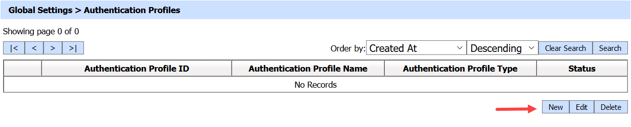 3. Click on the 'New' button to create a new authentication profile:
