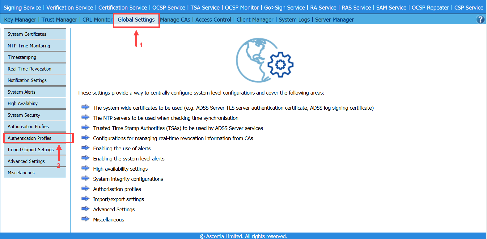 1. Click on the Global Settings