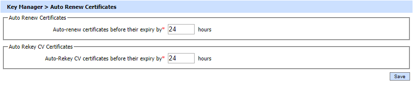 To use certificate auto renewal the renewal period time must be entered in this screen: