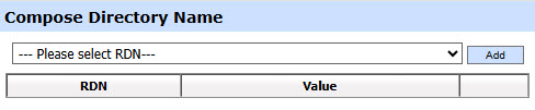 The operator can add multiple RDNs in the directoryName by clicking on the Add button. List of supported RDNs are mentioned below: