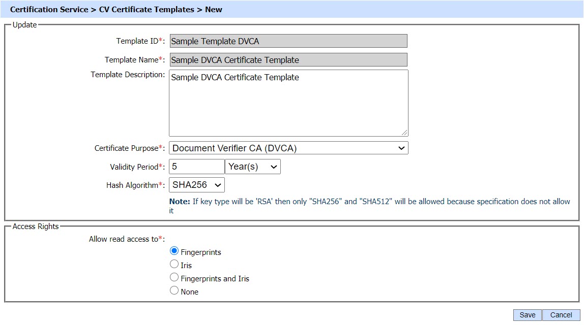The CV certificate contain the access rights that let an inspection system to access the bio-metric data on an E-Passport chip. You can select the required access right according to the requirement. |