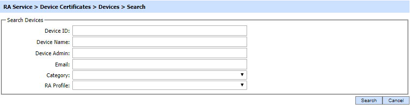Enter search criteria based on the Device ID, Device Name, Device Admin, Email, Category and RA Profile.