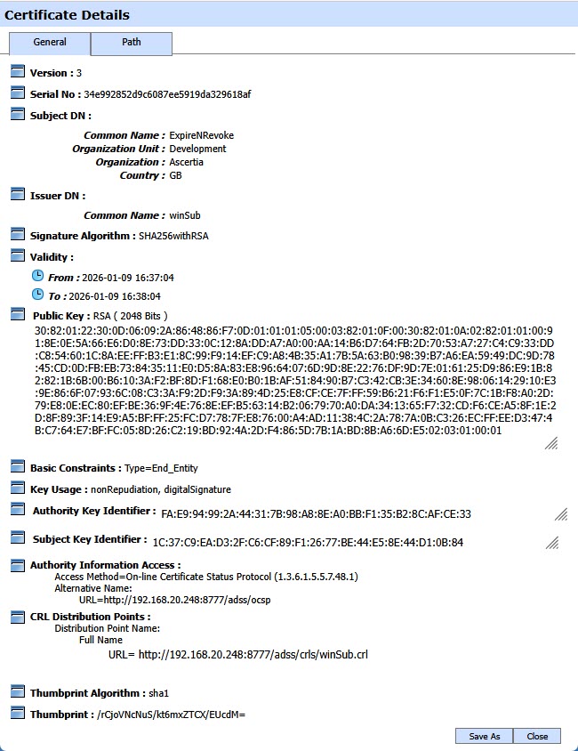 By clicking on Certificate Alias of the expired certificate, the following screen is displayed: