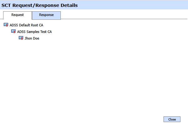 In case when SCT is not received from the Log Server then SCT Request/Response Viewer looks like: