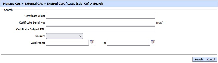 By clicking on the Expired Certificate tab after selecting the External CA, the following screen will be display all the expired certificates: