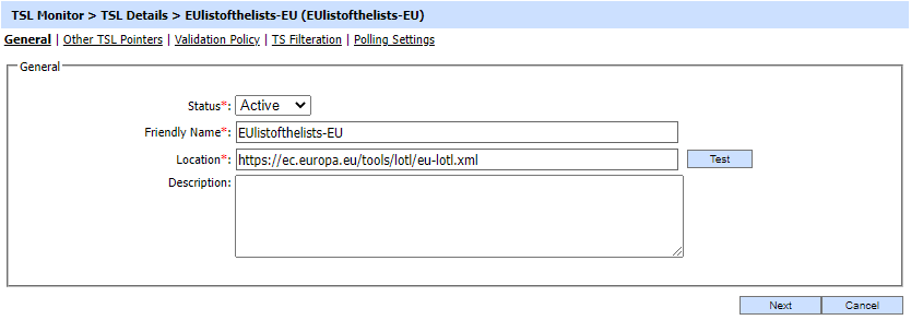 Here, the operator can add both either LOTL or a TSL and define its location. Clicking on the Next button will download the LOTL and then parse and then the information will be displayed inside that LOTL on the next screen. Afterwards, the operator will be navigated to the next screen.