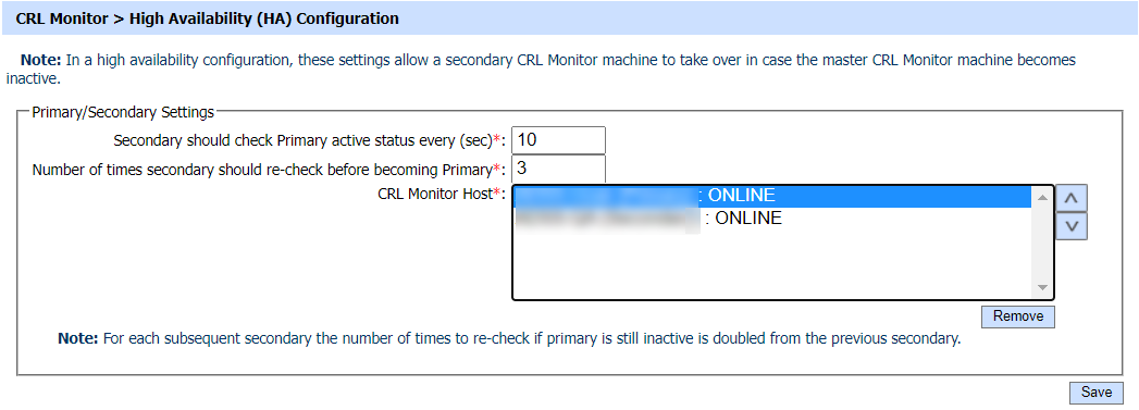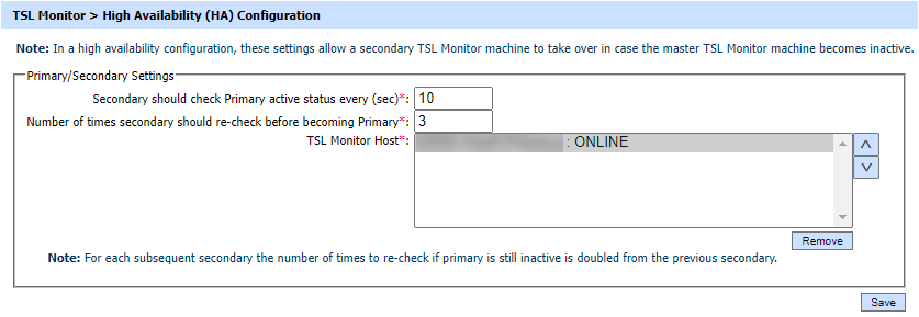 Use this button to remove a TSL Monitor Host from the High Availability configuration. |