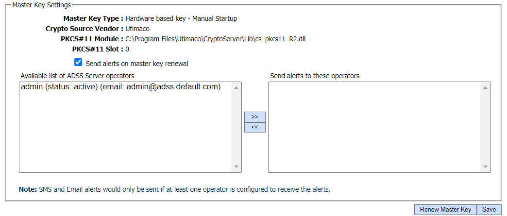 In the above screen, the Master Key Type can be seen and if the operator wants to receive alerts upon renewal of master key, it is recommended to enable the alerts by marking the respective checkbox. Clicking on Renew Master Key button will lead you to the screen below: