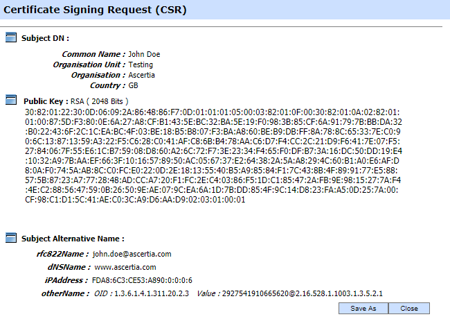 Certificates are only imported in Key Manager when PKCS#10 is generated in ADSS Server and certified externally to use this key for different cryptographic operations. When a PKCS#10 is generated using a service key, it is shown in the certificate list with Pending status.