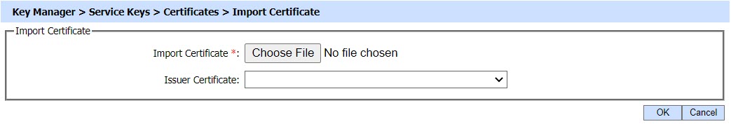 Import Certificate fields represents the certificate against the relevant key, whereas Issuer Certificate drop-down will list the issuers trusted inside the Trust Manager.