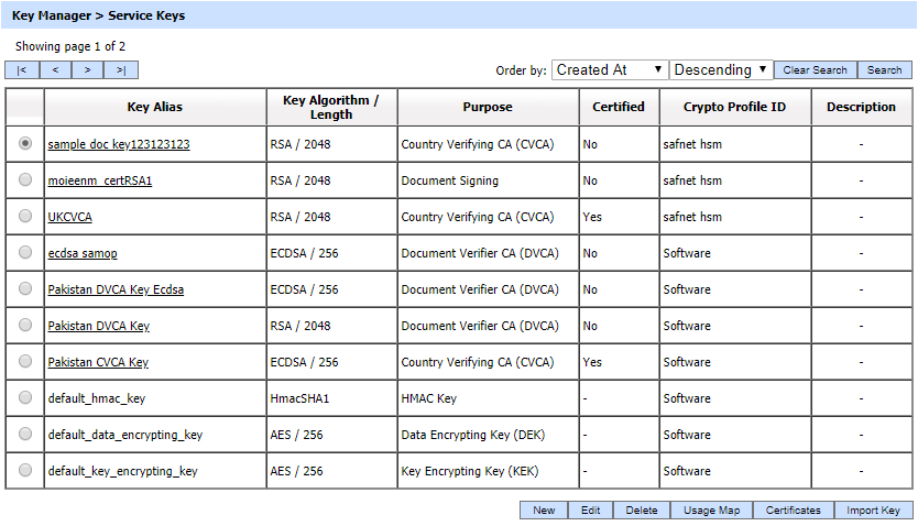 Once a key’s information is imported, the key will be visible in service keys as shown below: