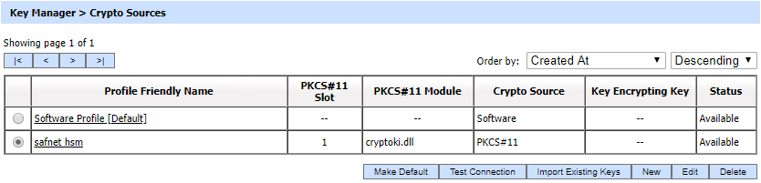 The operator will navigate to the following screen and select the relevant Crypto Profile: