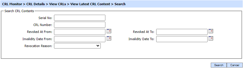 - Revocation Reason (i.e. all certificate revoked for a particular reason)