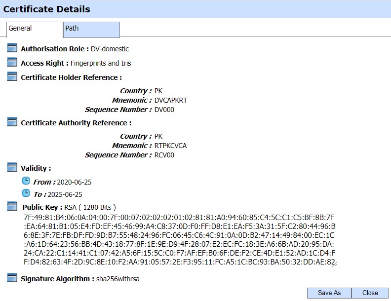 The contents of a selected Issued Certificate can be viewed by clicking on 'View' button. Clicking on the button will display the following screen: