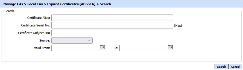 By clicking on the Search button on Expired Certificates main page will display following screen: