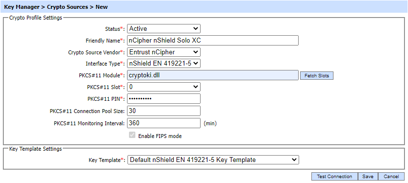 Select the option Entrust nCipher as Crypto source vendor. |