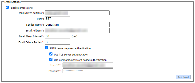If this checkbox is enabled, the operator will need to provide user name and password in their respective fields for SMTP Server authentication. |