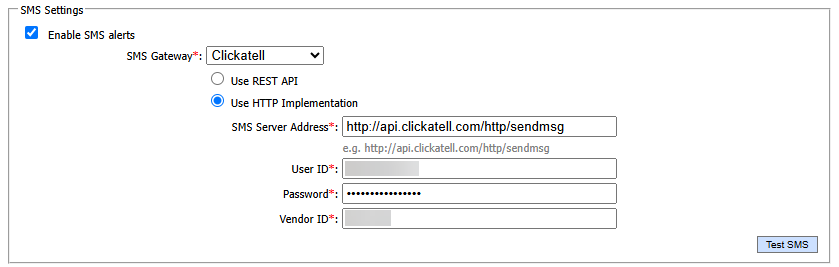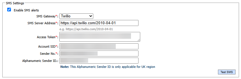 Check this option to enable delivery of alerts and OTPs via SMS. |