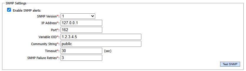 The timeout defines the number of seconds the ADSS Server should wait for a response from the SNMP Server before closing the connection. |