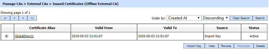 - Select the required Offline External CA from the grid and click on the Issued Certificates button.