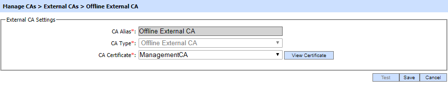- Go to location Manage CA > Configured External CAs.