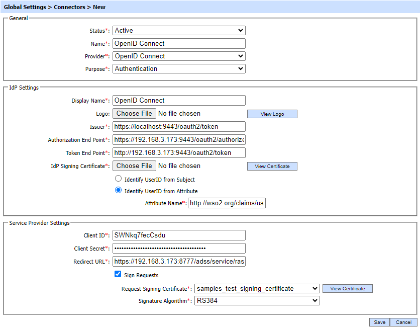 While configuring an OpenID Connect based IdP, the following screen will be displayed: