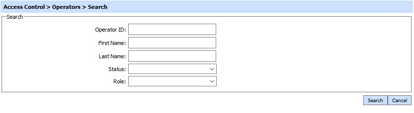 Operator accounts can also be searched from the manage operator main page. Clicking on the Search button will displays following screen: