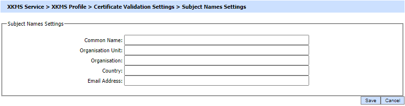 Fill in the respective fields with the required subject name information and click on the Save button. |