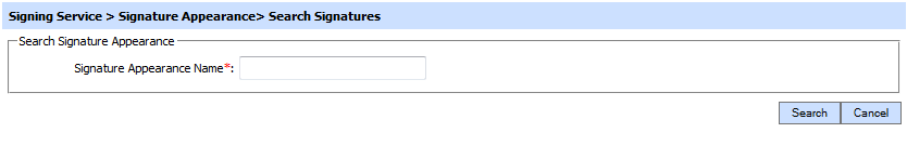 This helps to locate a particular PDF signature appearances. The PDF signature appearance can be searched based on "Signature Appearance Name". If a search is based on multiple values, then these will be combined together using the “AND” operand, and thus only records that meet all the criteria will be presented.