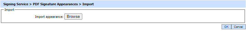It will allow the operator to import PDF Signature Appearance file from the file system.