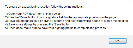 Use this option to create a empty signature field on preferred locations for a new document. |