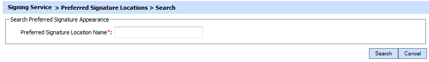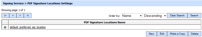 A list of existing preferred signature location is shown on this page. The various options are defined in the following table: