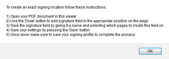 Set the name for the new PDF Sig. Location to be used. Clicking the "OK" button will launch the PDF Sig. Locations editor: