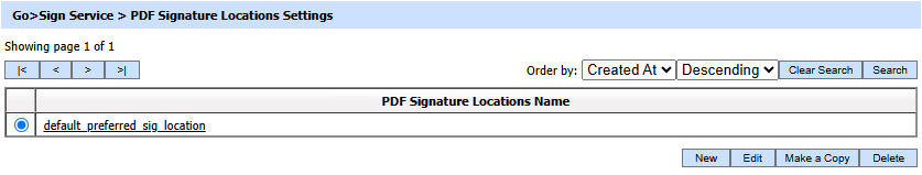 Clicking the "PDF Sig. Locations" sub-module shows the following screen: