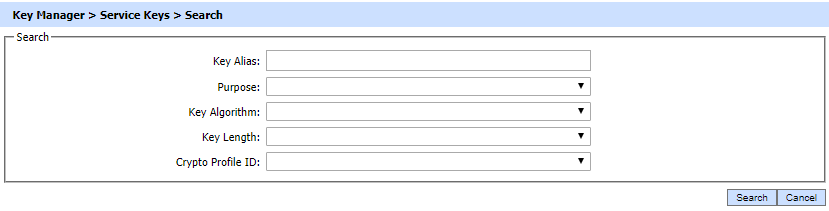 This helps to locate a particular type of key the Key Manager may have issued. A search can be made for a key of a particular type, length, algorithm, template or crypto source.