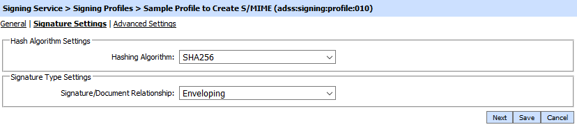 Within the Signing Profile configuration the following form is presented if S/MIME signatures were selected (each option is discussed in the table below):
