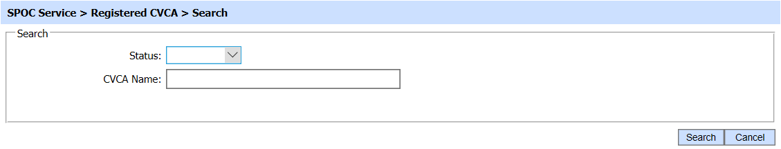 A particular CVCA can be searched based on Status and CVCA Name. If a search is based on multiple values, then these will be combined together using the “AND” operand, and thus only records that meet all the criteria will be presented.