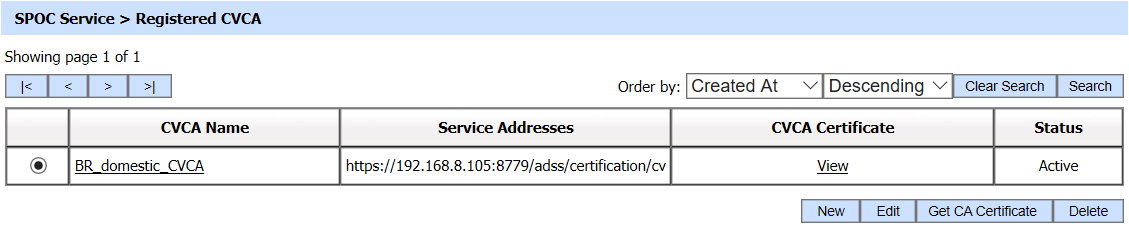 To register or edit a CVCA in SPOC Service, click on Registered CVCA and the following screen is shown: