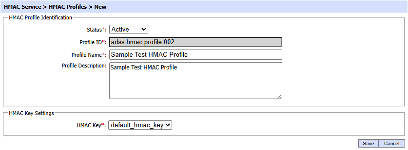 A HMAC profile may be marked Active or Inactive. Note an inactive HMAC profile will not be used to process HMAC requests. |