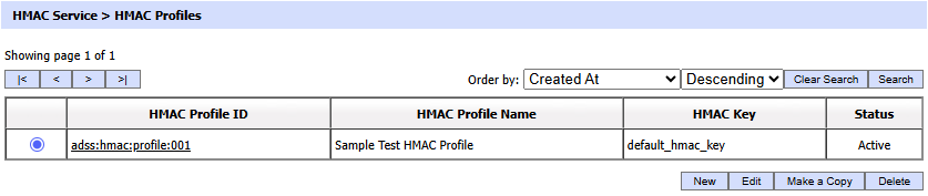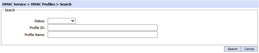 Clicking on the Search button on HMAC Profiles main page will display following screen: