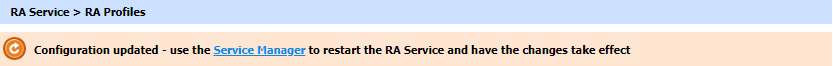 The configuration of the RA Profile is now complete. To have the changes take effect in the running system, ADSS Server will prompt for the RA Service to be restarted:
