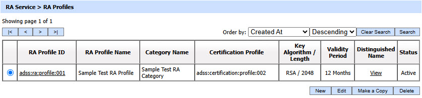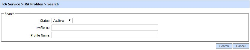 The RA Profiles can be sorted in various ways to make administration easier. Click the Search button and the Search RA Profiles page as shown: