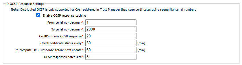 These settings are available only when real time certificate status checking is enabled in Trust Manager for the target CA . |