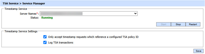 When the Log TSA transactions option is enabled then all TSA transactions are recorded in the ADSS Server database. With this option disabled no TSA transactions will be recorded in the database. This feature is useful when much higher throughput is required and logging is seen as an overhead. |