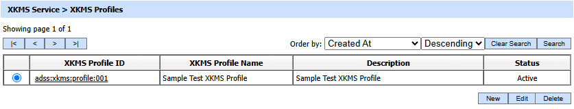Clicking on the Search button on the XKMS Profile main page will display following screen: